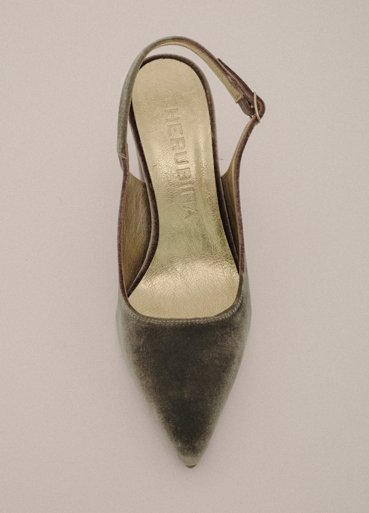 El zapato de terciopelo San Antonio pertenece a la nueva colección AW24 de Cherubina.